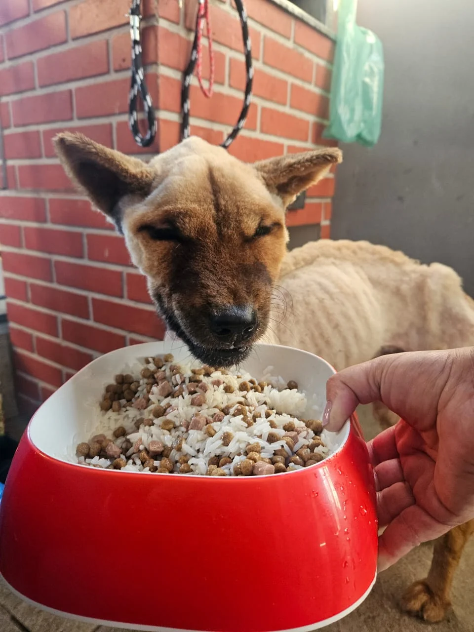 "Meu Simba foi resgatado em estado crítico. Hoje, após meses de cuidados, ele é um cão feliz e saudável. Obrigada,!"